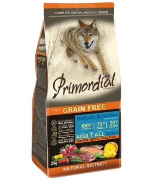 La croquette Primordial Grain Free Truite et Canard est un aliment complet et équilibré pour chien adulte, élaboré avec des ingrédients naturels sélectionnés avec soin. Cet aliment contient 35% de chair de truite désaretée fraîche, conçu sans céréale, il garantit une digestibilité optimisée.