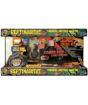 Mini double deep dôme, pack de deux lampes : jour/nuit 60W, un sac de Reptisand 4,5Kg, thermomètre analogique, abreuvoir et gamelle, Reptisafe, Reptivite, Repticalcium et un guide du soin du léopard en anglais (téléchargeable en français sur le site)